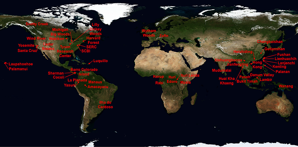 The 48 plots examined in the study, arranged by declining large-diameter threshold.